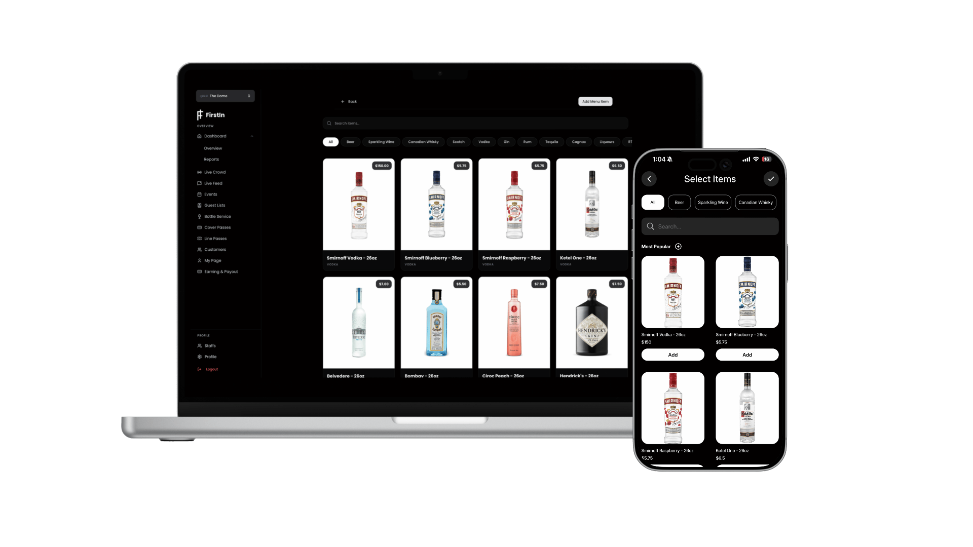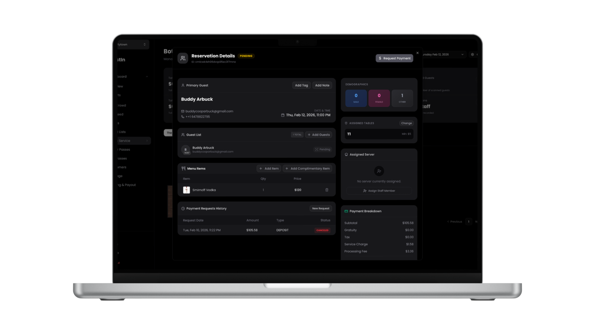 Customers book tables and select bottles from a searchable catalog — all before arriving.