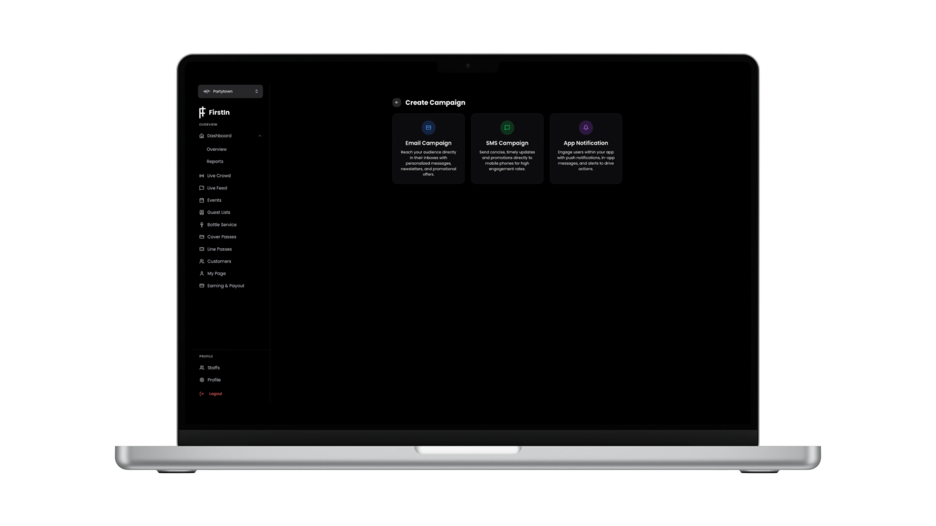 QR check-in at the door, auto-approvals with manual override, and built-in campaigns to every guest on your list.